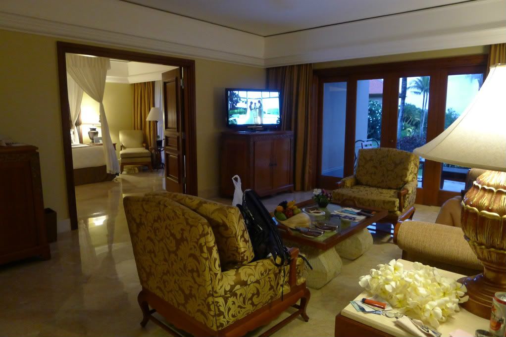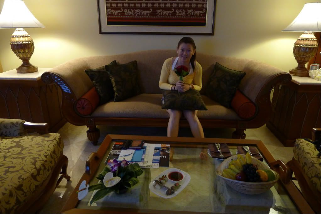 房间真的很大咯,我之前住的villa,押上那泳池,还不够这间大勒~~ |