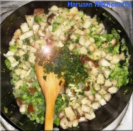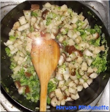 (3) 加入切丁的杏鮑菇及新鮮蘑菇.
