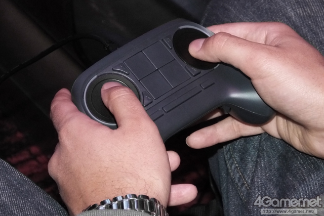 當然,這次試用的 Steam 控制器只是原型版本,控制器中央的預定搭載的觸控螢幕也還是 4 個四角按鈕,與最終版本的使用感覺有差異。此外,如果添加上最終版本的功能之後,或許可以實現屬於自己專屬的操作感覺也說不定喔。所以,就筆者這次在活動會場有限度地進行把玩的感覺,相較於右觸控板來說,左觸控板的操作很可能需要花上更多的時間來習慣。
