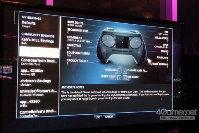 這次試玩以筆者本身來說感到最有趣的部分,就是 Steam Machine 所附屬的獨特造型的遊戲控制器「Steam 控制器」了。不只是第一人稱或第三人稱的動作遊戲,同時包括 MOBA / RTS 戰略策略遊戲,Steam 控制器是為了讓現階段在 Steam 遊戲庫中的 3000 款遊戲全都可以遊玩為前提所開發出來的控制器,最大的特徵是取代類比搖桿的兩個圓形凹陷的觸控板。