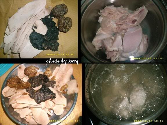 2)装一小锅水。。。。然后直接放鸡肉下去,煮到它水滚。之后把鸡肉捞起备用。
