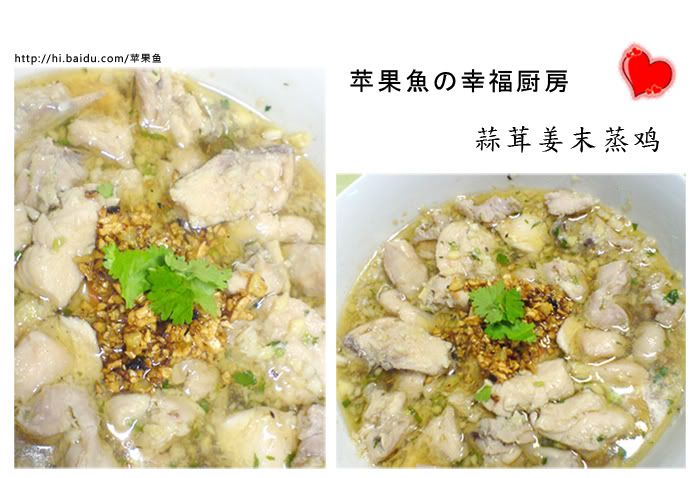 小鱼,来个大大碗的饭我要狠狠的吃掉你的蒜茸姜末蒸鸡,因为我煮的话姜不可以弄成末大爷不吃,所以我只好切一条条的而只样的话就少了我要的味道。你每次炒的包菜都很美哦。