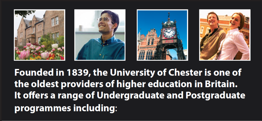 2. University of Chester - nice town, small uni, but majority british students, tuition fee around 8640pounds per year