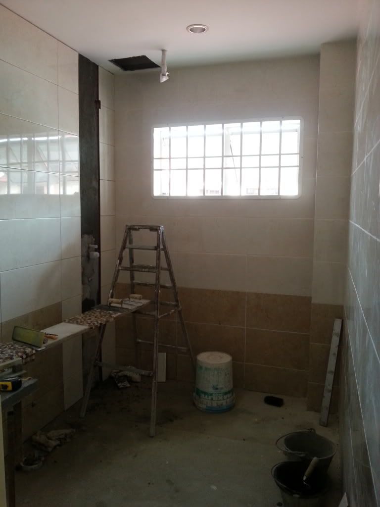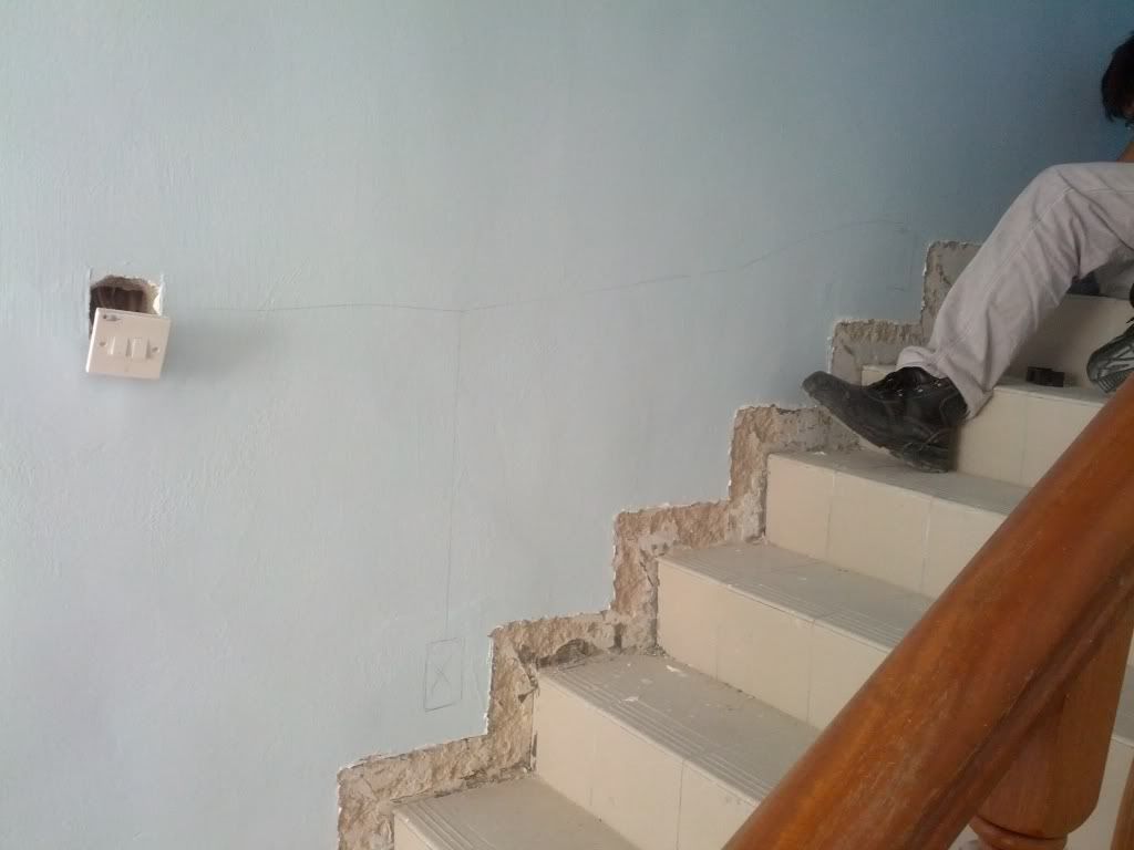 其实,最好水泥和拉电的工作做完才油漆。酱就不会浪费漆料和颜色不均衡的问题。