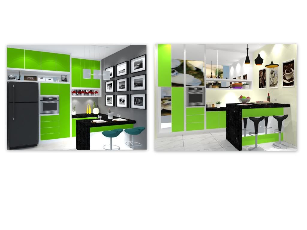 這是干廚房,右圖是新設計。冰箱會移去濕廚房,之前覺得太青色了,所以要求加些白色進去。