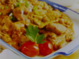 2)烧热麻油 ,爆香磨碎材料 ,加入肉片 ,拌炒一会 ,加入调味料同煮 ,至肉熟为止.