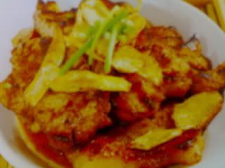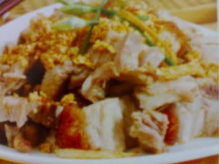3)把献汁煮浓 ,淋在猪扒上 ,铺上爆香姜丝即可.