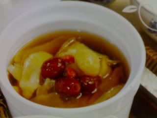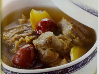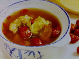 材料:排骨300克 ,龙眼干10粒 ,红枣10粒 ,玉竹10克 ,老姜 3片 ,白米酒2汤匙 ,