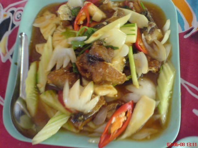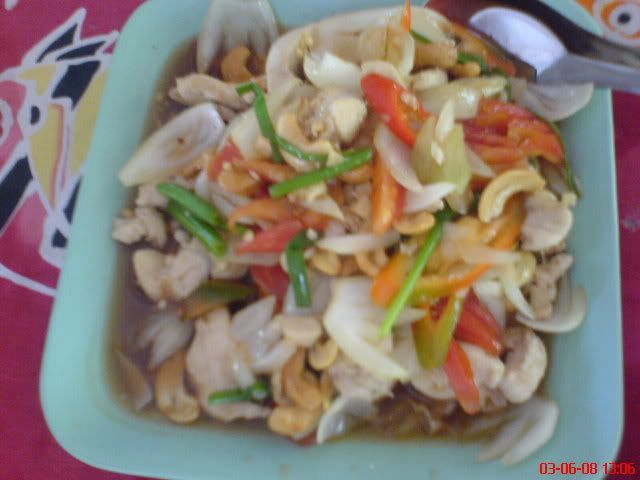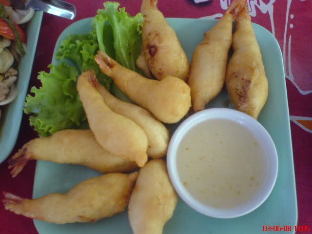 划了整三个小时的舟,有够累的.回到Boh Thor,个个饿到像饿鬼,吃到狼吞虎咽的样子. 这餐,是美味的泰国餐,很好吃!