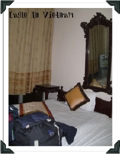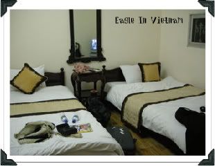 当车子转入昏暗的小巷,在一间四层楼的建筑物停下时,我们还不知道已经到了。 等到宾馆的工作人员帮我们打开车门,来迎接我们,要帮我们搬行李时,我们才知道我们已经到了Hanoi Guest House。 我是第一次旅行住宾馆,所以有几秒钟愣住了!昏暗加上下雨后有点积水的小巷,让我有点质疑自己选对了住宿吗? 但工作人员都很nice,尤其是和我通信的Mr. Manh Tien。我们照之前说好的一次过付了所有团费和住宿费。 在机场没换到dong,只好在这里换。USD1 = VND16,000。 他把钥匙交给了我们,就叫其他的工作人员带领我们上楼去。一放了行李,我们就下楼,得先解决晚餐。 问了Manh Tien附近还有什么可以吃的,他说大多数店都关了,路边摊就有。
