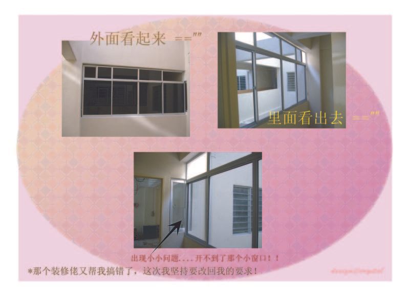 还有注意看墙壁,有龟裂的痕迹,有必要就叫developer补回。窗口的rubber有些好像有问题,尽量争取要developer换过。。 还有的就等你们去察觉咯。。。 |