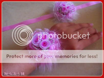 手腕花大致上就只有这样的设计而已,白色的毛毛还有粉红色的毛毛。小花就可以陪上你喜欢的颜色。 |