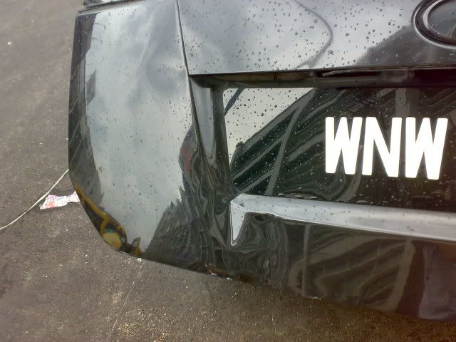 昨晚老板的车给人撞后逃,bumber变成V字,大灯的匡掉了下来....