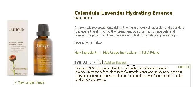 ohh我明白了,Calendula-Lavender Hydrating Essence for sensitive skin 所以用cool water,Lavender-Lavandin Hydrating Essence是for dryness所以用热水.