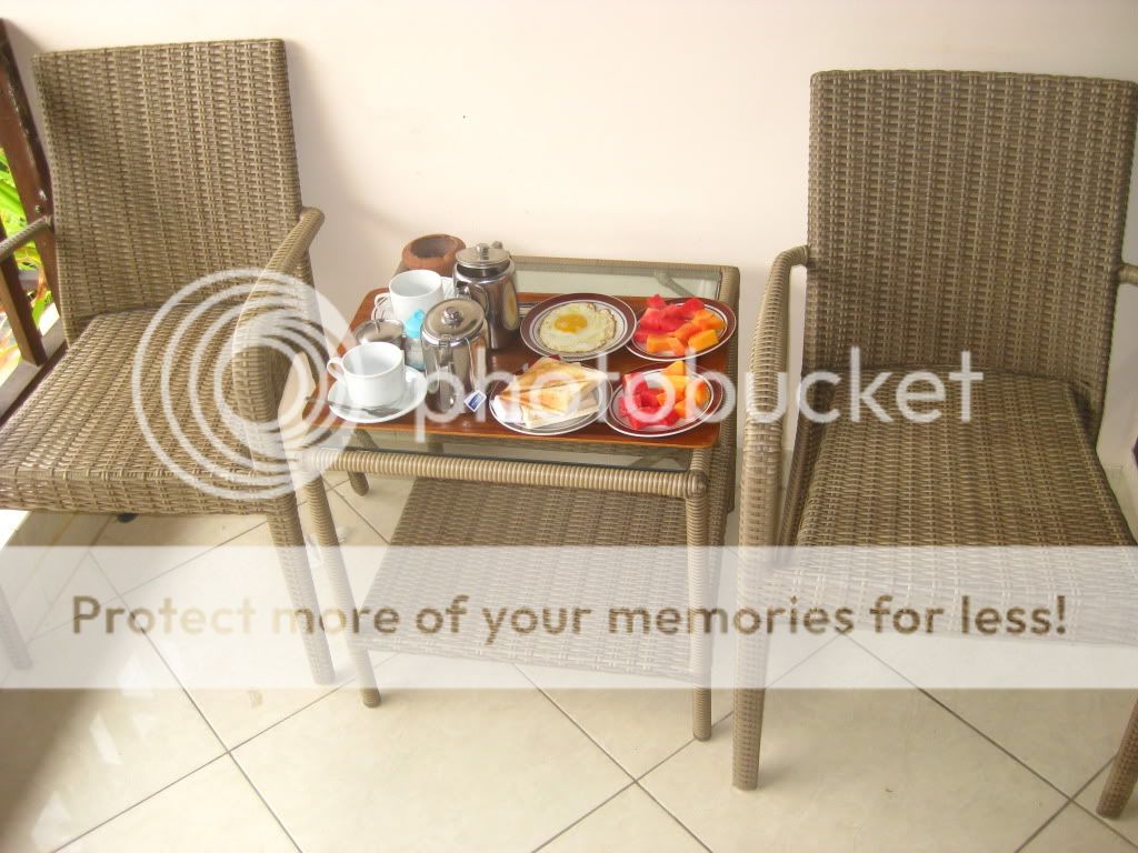 今天一早就醒(因为房间位子不怎么好,不通风,睡不好。)然后就叫了fat yogi的人送早餐来。