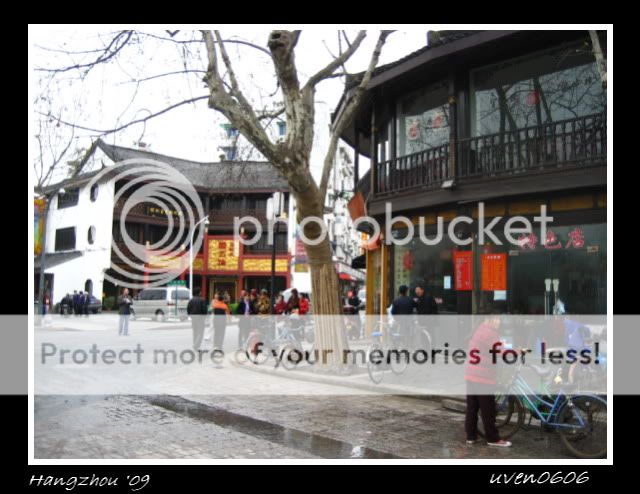 在这里合照后,我们就去等公交啦。嘿嘿,我也不知道坐公交到哪里,只是跟着朋友就是了。哈哈!!到了西湖附近的公交站,Ivy就转车到火车站啦,因为时间不早了,她也得赶回上海了!我就和猪蹄到处乱走啦,猪蹄比较熟悉那一带,所以她就是我免费的导游啦!!我们就一直走一直走,嘿嘿,只是路过西湖而已。那天天气拍照也不是很美,天灰灰地,所以不打算拍西湖了。再加上太冷了,还是先去买件外套啦!又不想买太贵的,就一直找啦!嘿嘿,最后终于找到了,然后就去吃晚餐啦!