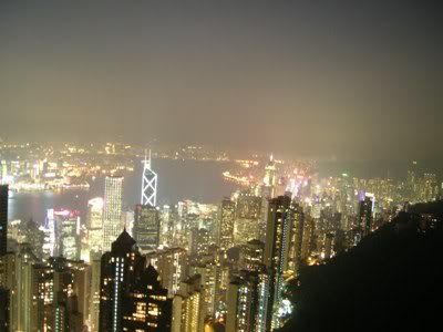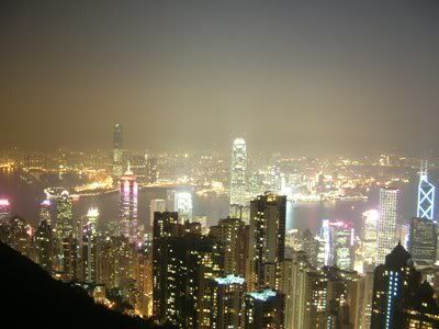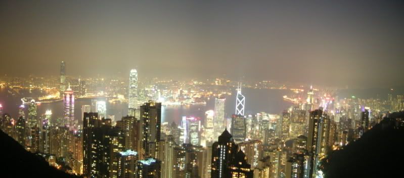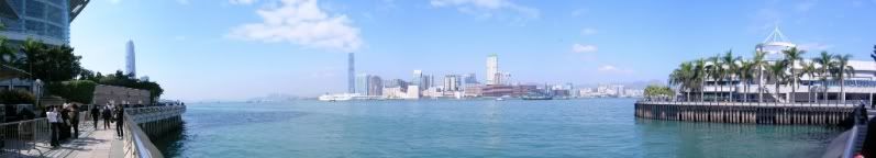 这是我的古董相机拍的,两张照连在一起,当天天气真的很好,没有雾,看得到星光大道那一带