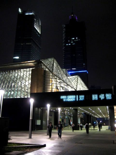 呈燕子型的市政楼对面就是深圳音乐厅,旁边就是图书馆了