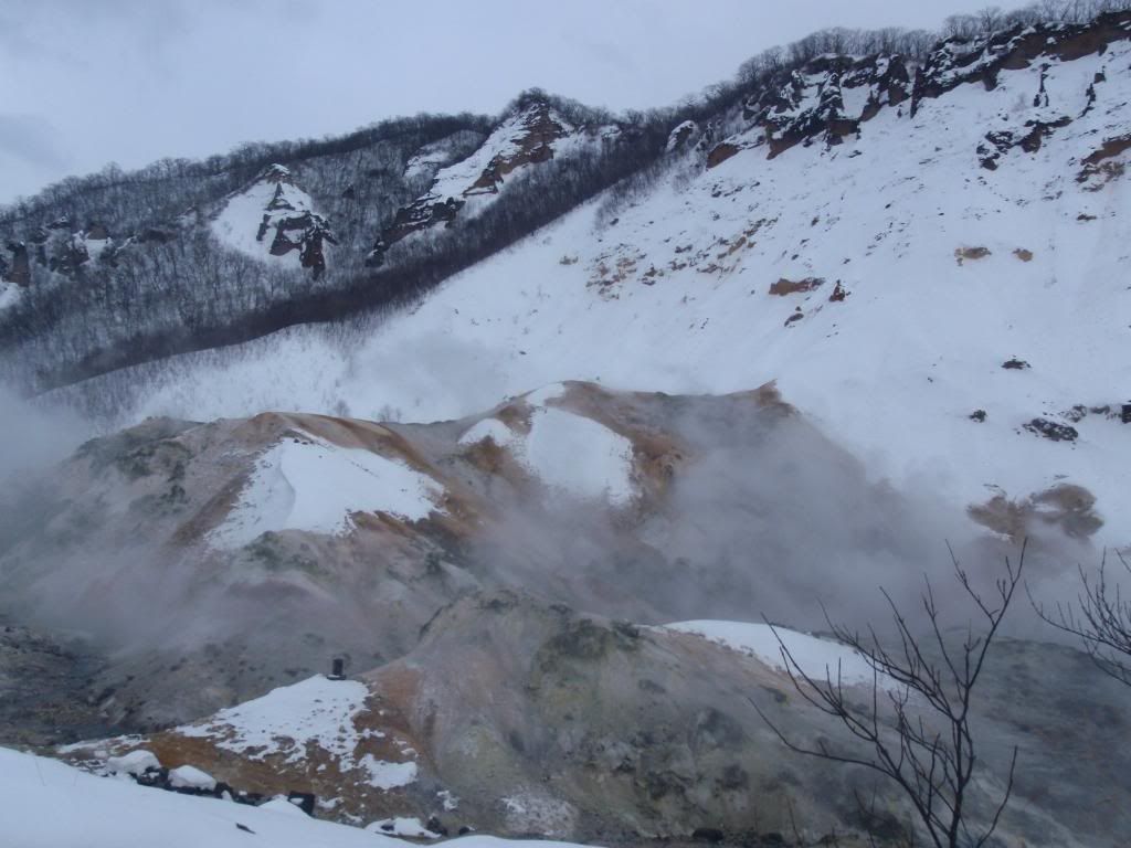 地狱谷极其壮观,且名副其实。在这里可以看到沸腾的岩浆、硫磺溶液及其他火山活动。地狱谷是登别温泉水流的源泉之一。