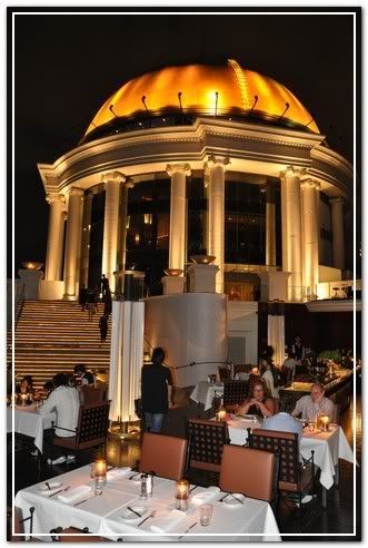 不是baiyoke sky tower,是曼谷第二高楼 State Tower,在Silom road和Chareon Krung Road交界处。baiyoke sky tower是曼谷最高楼,但好象没有露天的。如果可以直到SkyBar应该可选择不消费,有时人多,会被挡着要你先在楼下等候,然后消费。楼下也是露天,但没顶楼美。楼下露天有沙发,可躺着聊天,在64楼餐厅点饮料有免费小食和热毛巾提供,楼下点了饮料可带上去skybar,不过会先埋单。 |
