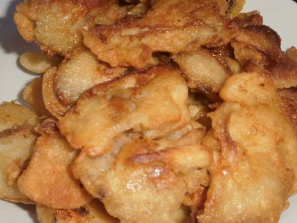 我没有比例的哦。。。全凭个人的经验。。。这种菇放入了之后会出水,所以你要搅浓稠一点。不可以太希薄,不然的话就很难炸了。 |