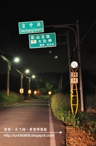 为了证明我到此一游,阿仁特别在大肚山的牌子前停下让我拍个照片留念,还贴心的让车灯打上牌子,让我在拍的时候更加容易捕抓镜头。由于晚上灯光不好掌控,所以即使他们提议帮我入镜,我还是婉拒了~ ^^