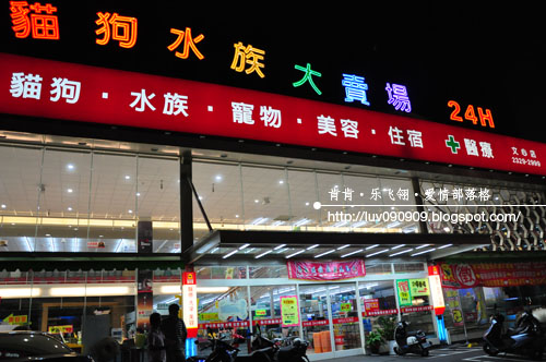 看看手表,才发现这时候已经是凌晨十二点多了。阿仁把尾翼送回公司取车后,就把我们送回民宿。但是在回途中我们却看见了一间二十四小时的宠物店,就马上要求阿仁停下让我们进去看看。有了这样的宠物店,家里的宠物要是半夜需要求医也不担心咯~