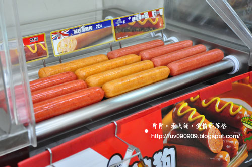 7-11里除了卖一般日常用品之外,还有我最喜欢的香肠!可惜我只能看着流口水,却不能买来吃,呜呜~所以买了饮料后我们就匆匆离开了7-11,然后在店外的石椅上吃早餐。
