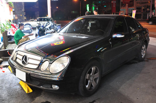 稍微参观了一下,原本想买衣服给kiki的,但是因为价格稍贵而放弃了,反正kiki也不愁穿了,呵呵!离开的时候趁着空档把阿仁的车子拍下,嘿~ 这就是载着我们趴趴走的平治房车咯!^^