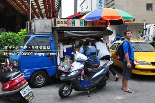 把手上的三明治吃完了,老公却还不满足。刚好附近有一摊在卖糯米团(NTD25),我就让老公去问问,看看那我能不能吃。结果因为有猪肉松,所以我还是放弃了不吃。还记得那个阿姨听到我说不能吃猪肉的时候,以为我是回教徒,还好心的和我说在国外吃猪肉不会被抓,哈哈!阿姨你好可爱哦~