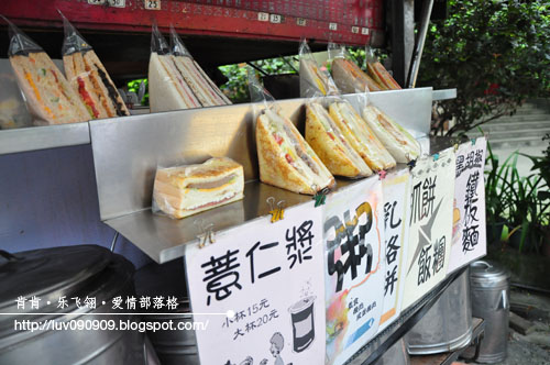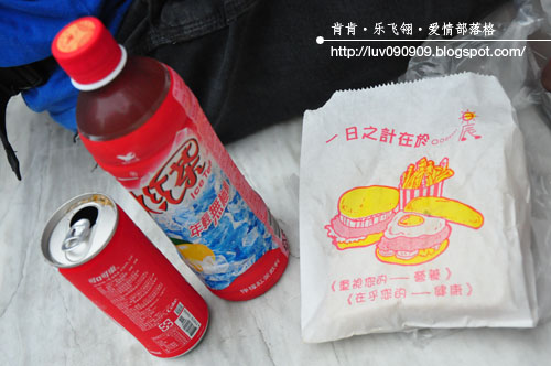 走出路口,就看到卖早餐的车子,很多人在排队?那就表示很好吃咯!想说点汉堡来吃,没想到却卖完了,所以我和老公就分别点了两份土司(NTD 25x2),然后再去对面的7-11买饮料。