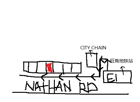 旺角E1站出口 > 转左看到city chain > 面朝向nathan road > city chain转右直走