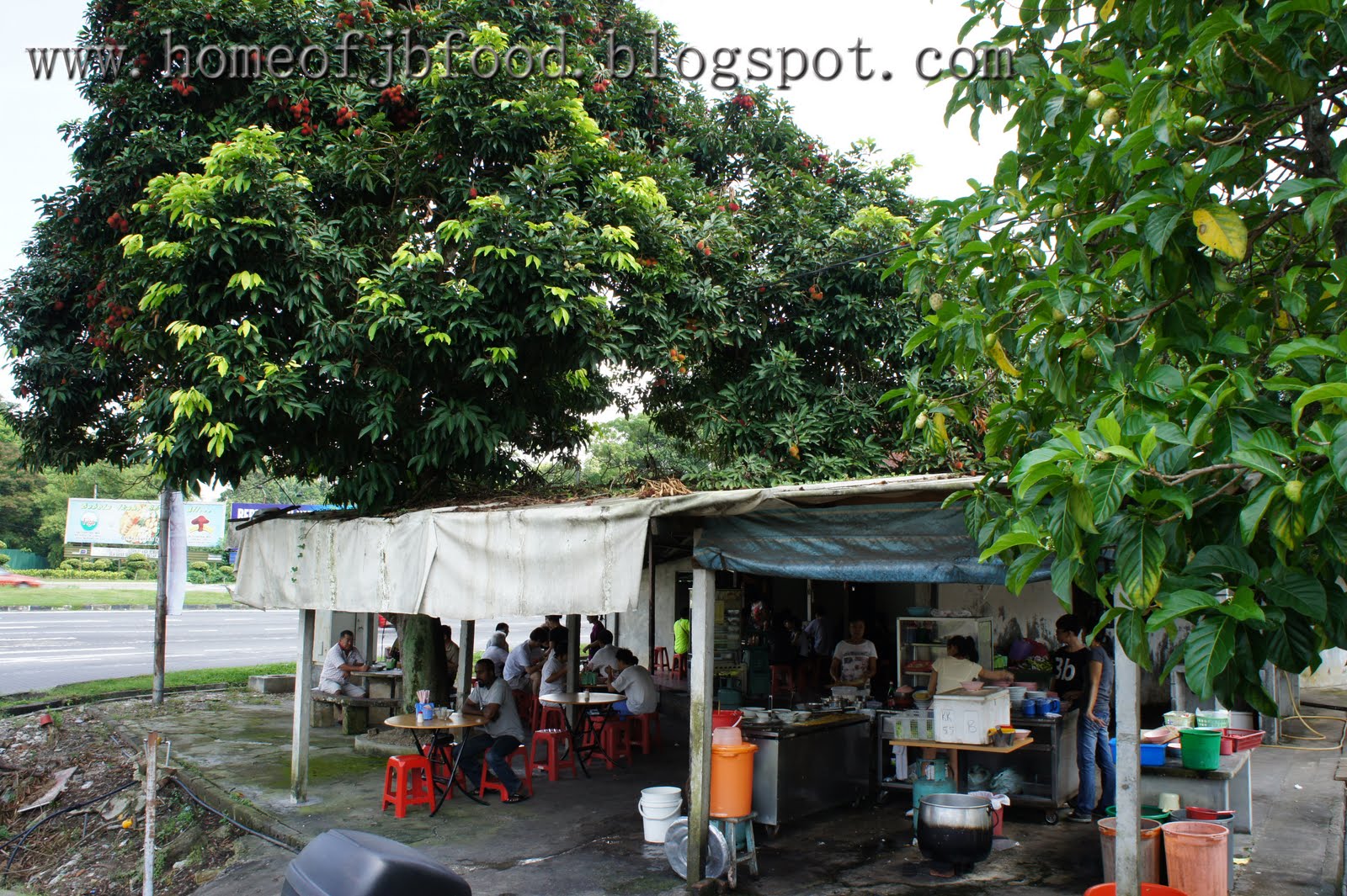 在繁杂的新山市区里,有着这么一个地方,老旧不显眼的小店屋,一旁是异常繁忙的车水马龙,另一边却是破旧不堪的木屋区,可在不远处却是高科技购物商场。试想想,在这样的地方,如果能够在大树下一边乘凉,一边享受着美食,荫凉的习风伴随着仿佛远处传来的喧闹声,心情,也肯定会轻松起来。