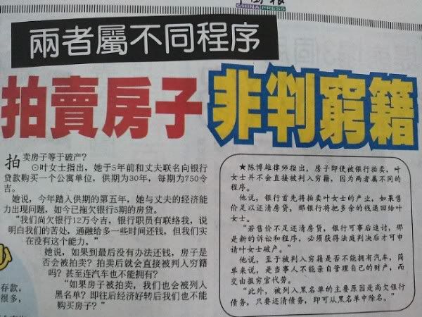 “如果房子被拍賣,我們也會被列入黑名單?即往后經濟好轉后我們也不能購買房子?”