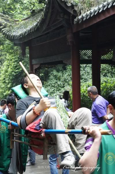 你可以坐一种以竹子做的轿子,四川人叫它“滑竿”。