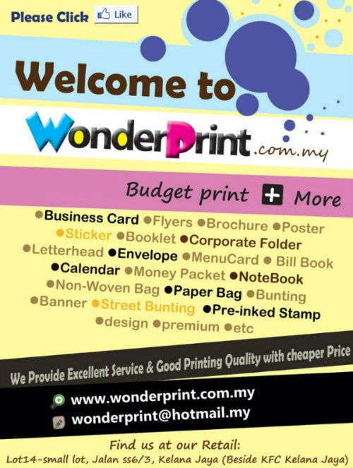 你也可以到我们面书看看咯~ www.WonderPrint
