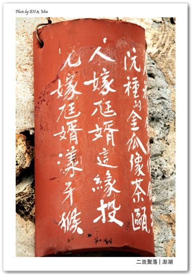 澎湖旅游期其中一个让我留下深刻印象的就是一个叫二崁聚落的小村子。这村子,从村口走到村尾,要是不停下来的话,可能不到十分钟就走完了。 兴建自清咸丰同治年间的二崁村聚落,是澎湖县历史建筑十景之一,也是台湾历史建筑百景之一,聚落面积很小,大概从巷头走到巷尾就结束了,却有独特风土民情,还有咕咾石(珊瑚残骸)建筑。当地文史工作者许国峯说,“以前在澎湖最有钱的人用砖瓦盖房子、第二等有钱的人用石头,最穷的人才用咕咾石,咕咾石的优点是透风性好,因此不容易聚集湿气”。虽然二崁也是闽南建筑,却因为地理环境不同,特色也与福建不同。 二崁大部分宅舍还遵守传统禁忌,约定俗成是盖房高度不得超过村内唯一的庙宇“二兴宫”,二崁不像一般澎湖人讨海为生,二崁以经商为主,布行、药材行为主, 高雄有些陈姓药材商,很多都来自二崁。经商需要有条件就要有学问,懂得记帐,也就是属于文职的聚落。此外,二崁也是单姓聚落,排外性很高,女性只能嫁出去或招赘,维持宗族的完整性,即使被招赘,子孙也要改姓陈。 而这里最最最让我留下深刻印象的是一家叫褒歌馆的人家。  “十八送君去台湾,目眶汝红阮也红,目屎一粒一斤重,滴落土脚土一空”。