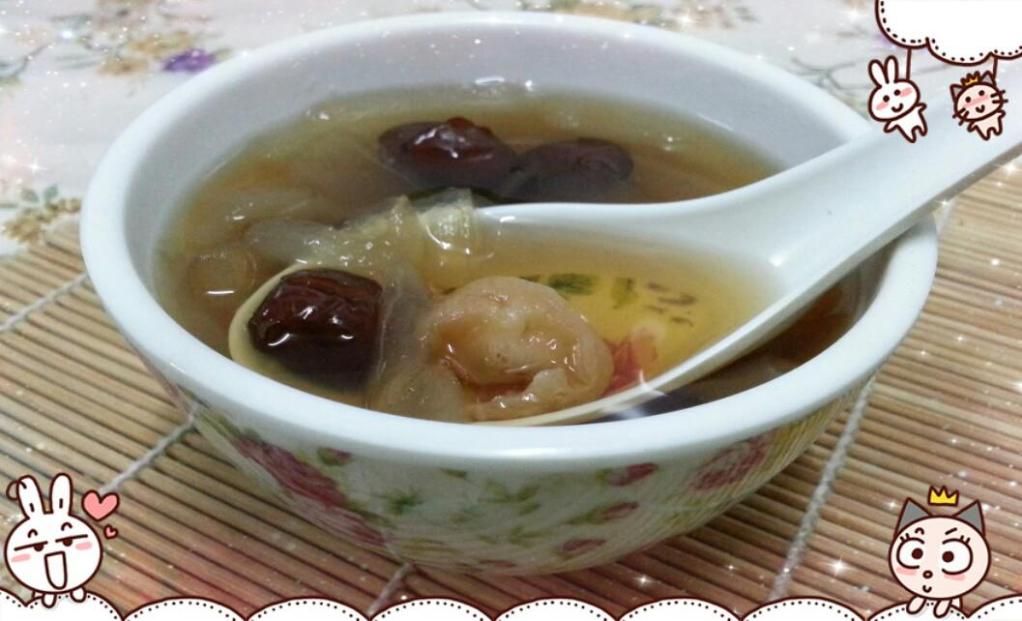 先把罗汉果煲到色泽乌黑,下红枣和白木耳煲一会儿。