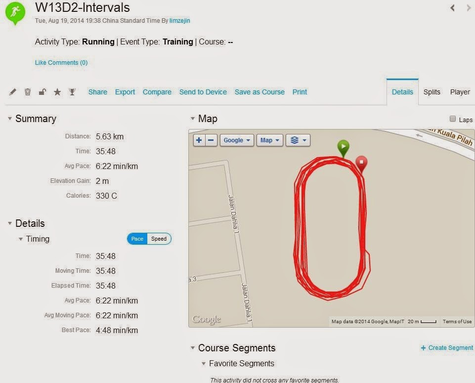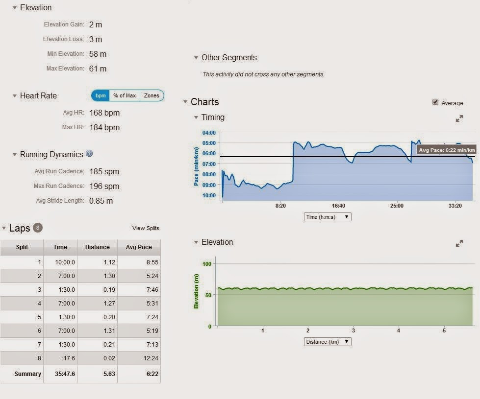 步频相对的比较稳定,极大可能是因为在Running Track跑的关系。虽然是沉闷,但是在跑步道上练习的确有其好处,所以还是会回到这个地方来练习,特别是interval。