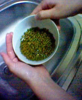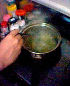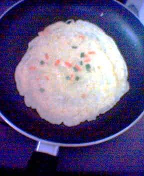 (3)准备SAUCE PAN,1茶匙油,1勺子面糊,煎至金黄色。可以配辣椒酱。
