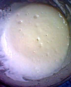 (3)将面粉和糯米粉筛过,加调味料,不要放太多水,要糊糊的,稠稠的,搅匀。