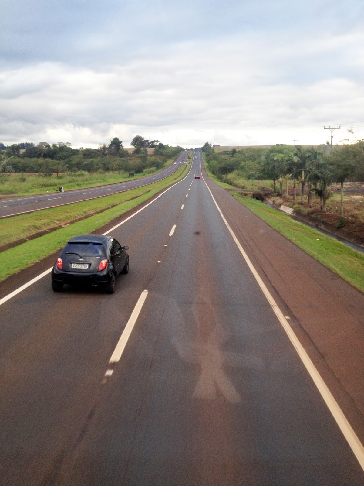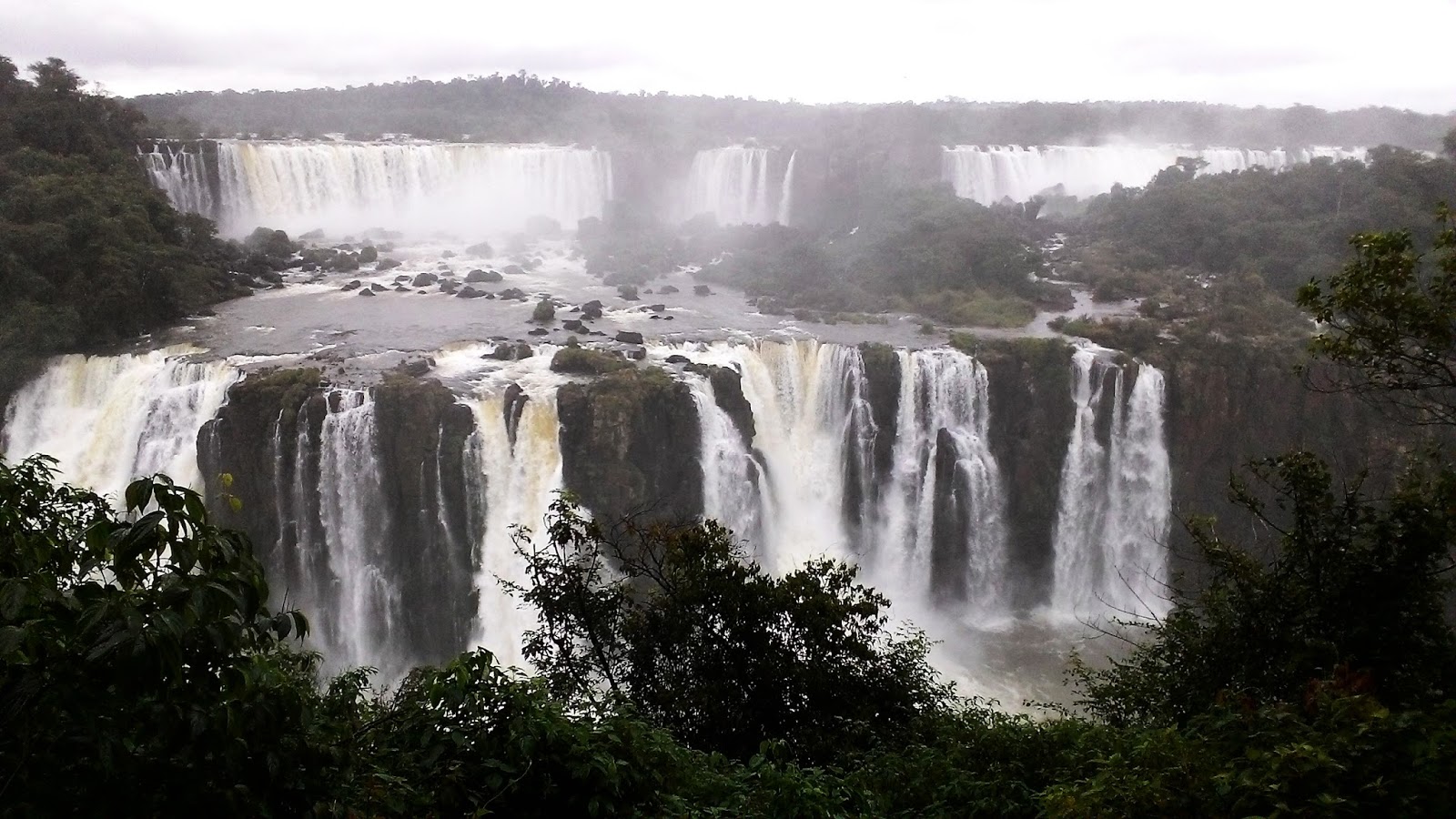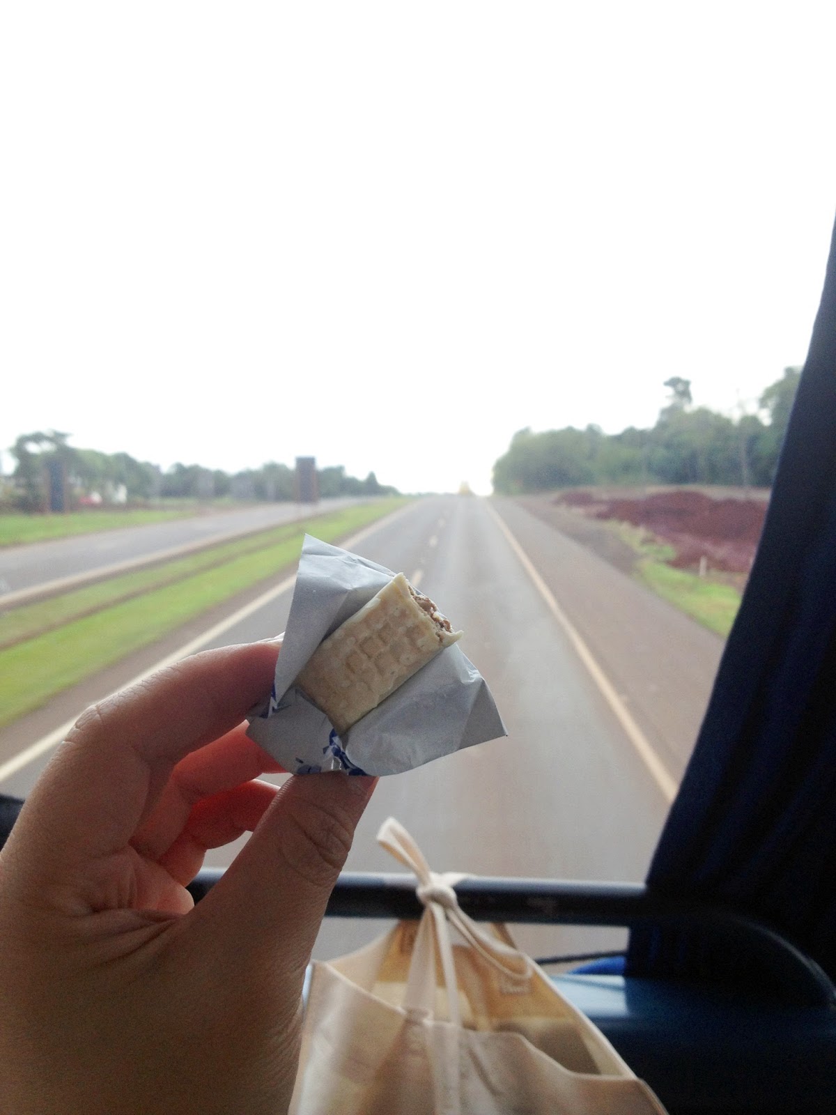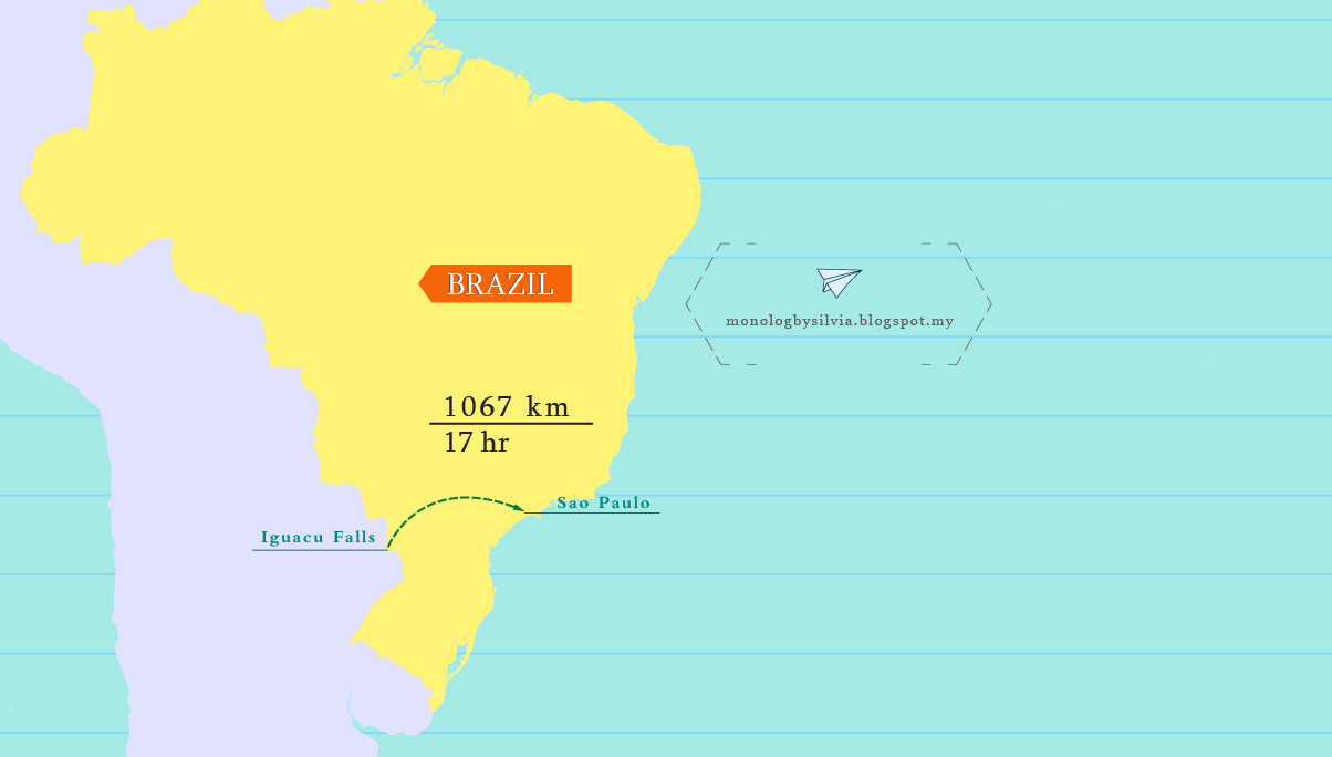 玩过了冲瀑布,天空从下着绵密小雨变成倾盘而下,反正身上全湿了所以也没差, 由于等待火车的队伍实在太长,于是就走Green Trail徒步到大门处。 雨势非常大,许多游客都聚集在等待返回市区的巴士站,没想到的是车上竟然还开了冷气, 载满人的巴士上还是寒冷无比。 回到Puerto Iguazu小镇车站,等待开往巴西的巴士同时, 不小心被口操流利英语的柜台妹子忽悠,失心疯买了张明日下午从巴西城鎮Foz do Iguacu 出发往聖保羅SaoPaulo的巴士票,埋下明日大抓狂的种子。 开往巴西的巴士上除了我之外只有3位乘客,或许是这个原因,所以过海关时, 司机非常热心的带我到海关办公室外,甚至一改常态,等我办好手续再开车, 简直推翻了网上所有“等下一班巴士”的规定。 顺利入境巴西。