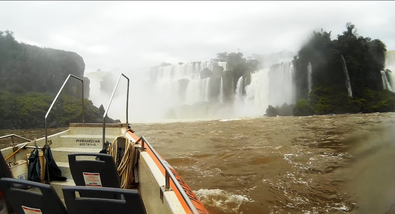 船家先把船开往Isla San Martin左边方向,让游客可以近距离对瀑布拍照, 正当大家沉醉在眼前的美景时,突然船开动了,直接冲向瀑布底!