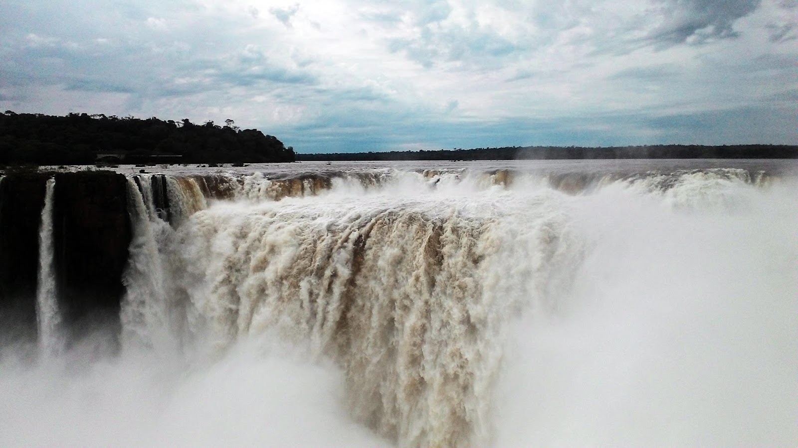 越过Superior Iguazú River后,就抵达伊瓜苏瀑布群里的第二大瀑布Salto San Martin, 一靠近观景台,瀑布飞泻掀起的水霧直接让人湿透,加上早上下过雨, 空气中潮湿的水分影响了视线,但我还是深深的被这氣勢恢宏的瀑布而折服!