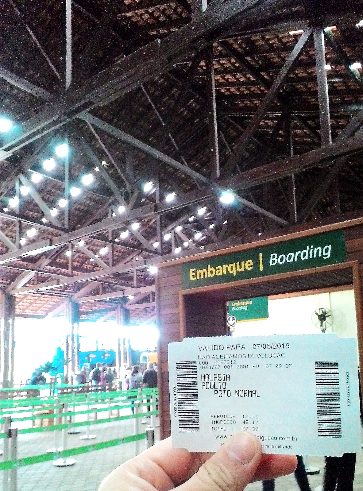 刚一下车,就听到了震耳欲聋的水声,赶紧排队买票,购买门票时需带护照, 当地居民和游客各收两种不同费用是一定的,门票里已包括乘坐公园内的 Rainforest Train火车, 火车分别会停靠2个站 –Cataratas Station 和Devil’s ThroatStation, 每半小时一趟。这里也提供寄放行李的服务,但价钱是车站的数倍。