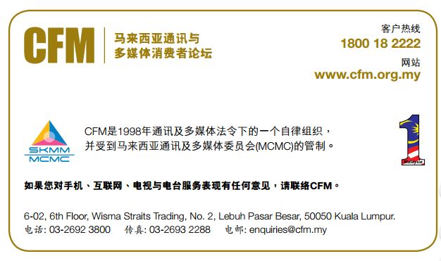 4.Communications & Multimedia Consumer Forum of Malaysia(CFM) 马来西亚通讯与多媒体消费者论坛