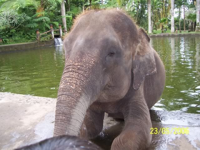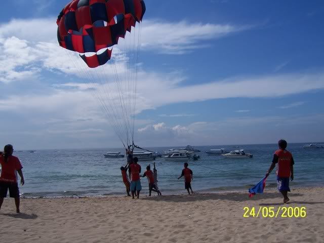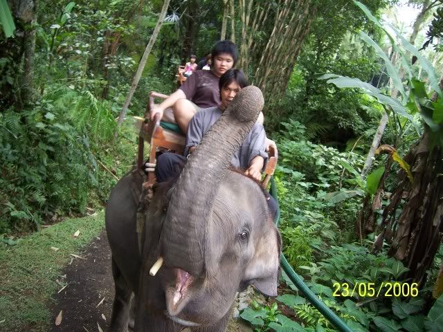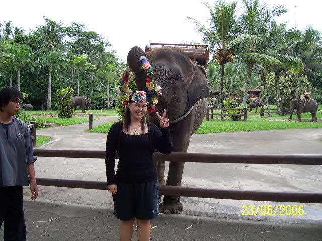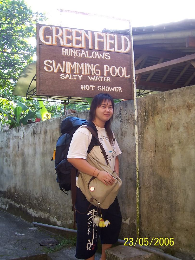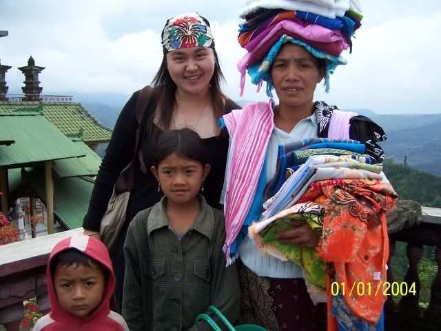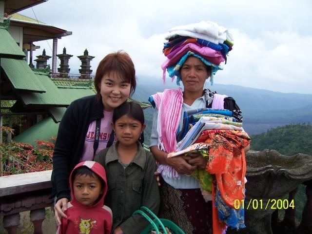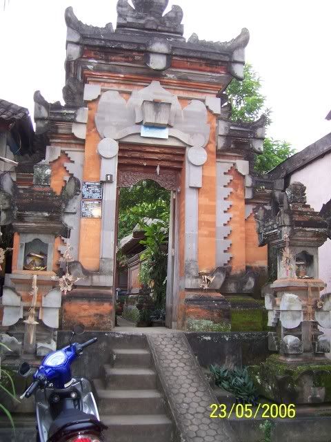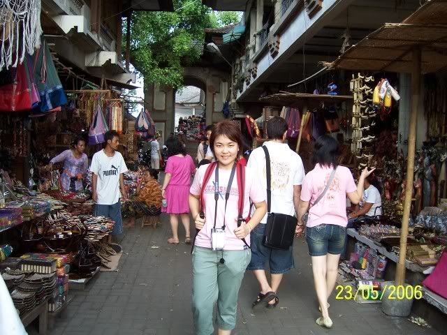 吃完了午餐後﹐我們就啟程去庫塔(kuta)市區了﹐途中會經過一些當地的廟﹐我們都會停下來進去參觀﹐在進去前﹐要用沙籠圍住下半身的﹐沙籠是不用收錢的﹐不過有些地方就要﹐如果自己有最好用回自己的吧﹗﹗!!在去市區的途中﹐我又累得睡著了﹐在到達廟廟的時候﹐還是有點睡不醒的樣子﹐所以拍照的時候樣子就會有點跩...~~~!  |