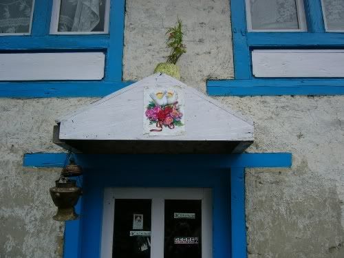 历时1小时许,我们抵达 Hotel Namche。再次回到这里,在餐厅渡过一些时间后,我们在附近的商店及摊子游走。发现这里的商店蛮齐全。杂货、旅游配备、娱乐场所、手工艺品琳琅满目。我们在面包店吃了cocholate面包及蛋糕 (200 NPR) 。边吃边欣赏附近的景色。结果,天下起雨来。在细雨纷飞中我们离开面包店往回hotel的路途走。随意的进入一间小商店。一位老婆婆向我们兜售她的产品。因为雨水,我们在她的店内逗留了好一阵子。我们买了好多的饰品(yak、手链、项链、耳环等) 。我最喜欢的是刻有“天眼”的牌子,很有意思。回到hotel,大家轮流洗澡。好舒服,好爽!好久的澡凉,因为太久没冲凉了(9/9 开始) 。