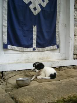 在阳光底下的露天早餐:spring roll with egg, toast, milk tea. 很加州阳光的感觉。高山户外的早餐,阳光过於热情,我们吃到后来选择在室内了。搞到老板也笑了。这里的老板蛮健壮。他的手艺很不错,是我吃过这么多nepali餐,最好吃的。