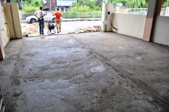 屋前开始铺洋灰,过几天就铺砖了